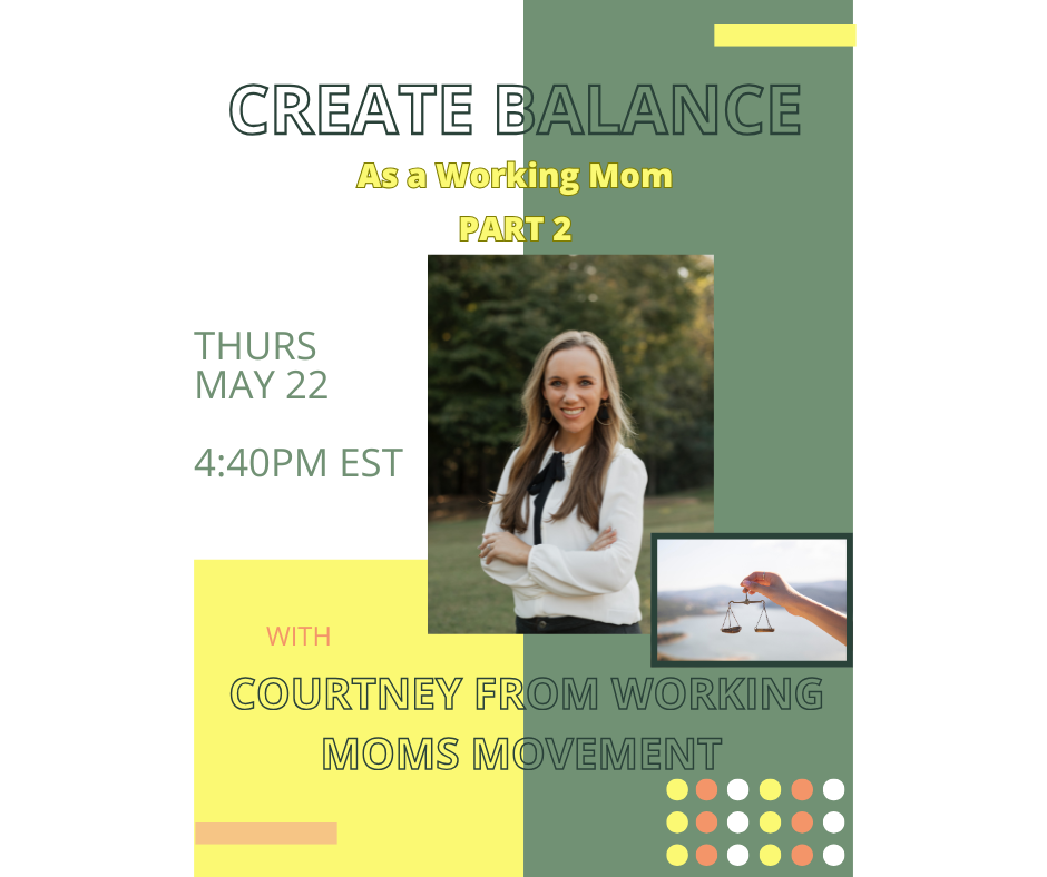Courtney created the Working Moms Movement to help working mothers find work/life balance. Working moms are good about showing up for the big moments, but we deserve to be able to enjoy more of life’s little moments too.