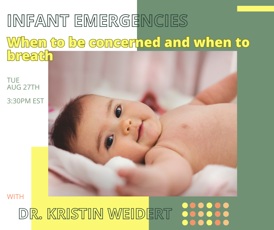 Dr. Kristin Weidert from Sage Mother Co will be teaching a class about her Newborn and Infant Emergencies Class. When to be concerned and when to stop and take a breath.